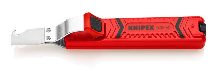Για την απογύμνωση όλων των κοινών στρογγυλών καλωδίων. Αυτομπλοκαριζόμενο σύστημα συγκράτησης του καλωδίου. Βίδα ρύθμισης του βάθους απογύμνωσης. Λάμα που στρίβει για κυκλική ή κατά μήκος κοπή. Ανταλλακτική λάμα στο εσωτερικό της λαβής. Σωστό πιάσιμο και αποφυγή γλιστρήματος χάρη στο μαλακό υλικό της λαβής και στην υποδοχή για τον αντίχειρα. Περίβλημα: συνθετικό υλικό, ανθεκτικό στην κρούση. Με μαχαίρι και αγκιστρωτή λάμα μαζί με προστατευτικό κάλυμμα.