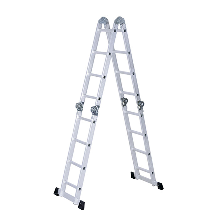 Σκάλα πολλαπλών χρήσεων από ενισχυμένο προφίλ πάχους αλουμινίου 1.4 mm μέγιστης αντοχής. Διαθέτει ενισχυμένους συνδέσμους με 6 αυτόματες ασφάλειες μεγάλου μεγέθους και πάχους 2.3 mm, καθώς και μπάρες στήριξης. Η σκάλα έχει τη δυνατότητα να διαμορφώνεται σε 6 διαφορετικές θέσεις κλειδώματος και είναι εύκολη στη μεταφορά / αποθήκευση λόγω του μεγέθους της. Κατασκευάζεται σύμφωνα με τα ευρωπαϊκά πρότυπα EN131.