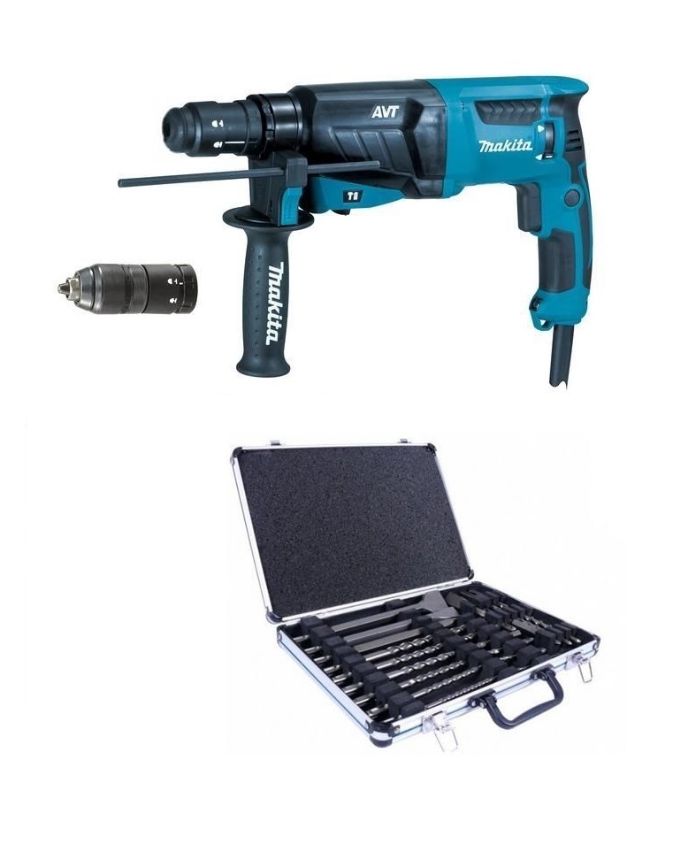 MAKITA - HR2631FT12 Πνευματικό Σκαπτικό SDS-PLUS AVT με Σετ Τρυπανιών 17 Τεμαχίων και Ταχυτσοκ
