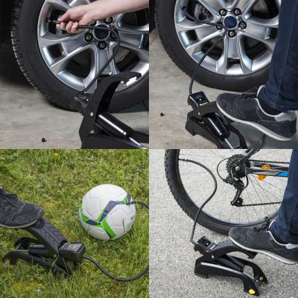 • Διατίθεται με τρεις αντάπτορες κατάλληλους για: ελαστικά ποδηλάτου, μπάλες, παιχνίδια και στρώματα αέρος.