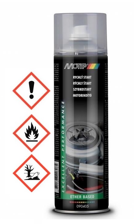 Βασίζεται στον αιθέρα και σε ένα μείγμα βουτανίου και προπανίου. Εξασφαλίζει στις μηχανές εσωτερικής καύσεως με περιορισμένη δυνατότητα εκκίνησης, γρήγορη εκκίνηση χάρη στην εύκολη ανάφλεξη του αιθέρα. Με δακτυλίδι ασφαλείας ψεκασμού. Με ανατομική βαλβίδα. 10 χρόνια ζωής (στο δοχείο).