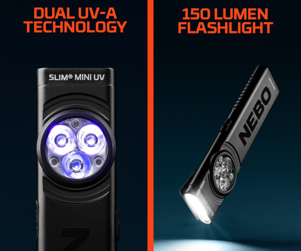 • Φωτίστε το αόρατο με τον φακό SLIM MINI UV, ο οποίος χρησιμοποιεί τεχνολογία Dual UV-A για να αναμίξει δύο UV μήκη κύματος σε μία πηγή φωτός.