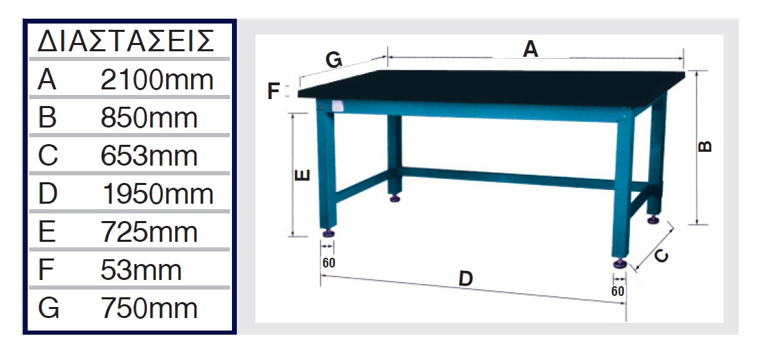 BULLE - WB-21M Πάγκος Εργασίας 2.1m