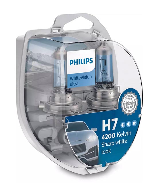 To σέτ περιέχει 2 λαμπτήρες White Vision ultra H7 και 2 λαμπτήρες W5W έτσι ώστε να αποχτήσει άσπρο χρώμα και η μικρή σας σκάλα φώτων