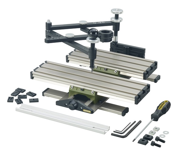• Το τεμάχιο εργασίας ευθυγραμμίζεται και τοποθετείται στον κινούμενο οδηγό και ασφαλίζεται με σφικτήρες σιαγόνας (εδώ με το σετ σιαγόνων σύσφιξης MICROMOT NO 24 256 το οποίο δεν συμπεριλαμβάνεται) ή με μια μέγγενη.