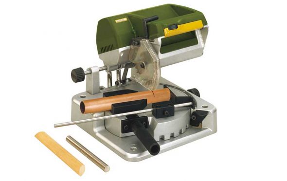 Είναι ιδανικό για κοπές με λοξοτομή. Έχει στρογγυλή τράπεζα εργασίας με σφίξιμο για την επεξεργασία αντικειμένου περιστρέφεται χωρίς να περιστρέφεται ο κεντροφορέας. Ο κεντροφορέας που κινείται πλευρικά εξουδετερώνοντας το ενδεχόμενο σύγκρουσης της λάμας με το σύστημα σφιξίματος. Ο οδηγός και το εργαλείο κοπής με λοξοτομή 45 μοιρών διασφαλίζουν ακριβώς τα ίδια μήκη για κορνίζες. Το PROXXON KGS 80 πριόνι έχει μεγάλης ισχύος, αθόρυβης λειτουργίας μοτέρ DC Η πριονόλαμα έχει επένδυση βολφραμίου και κόβει μη σιδηρούχα μέταλλα, ξύλο και πλαστικό. Η στρογγυλή τράπεζα είναι κατασκευασμένη από εξαιρετικά σταθερό χυτοπρεσαριστό αλουμίνιο, με εξαρτήματα τορναρισμένα. Μέγιστο ύψος κοπής (90°/45°) max Ø25/20mm