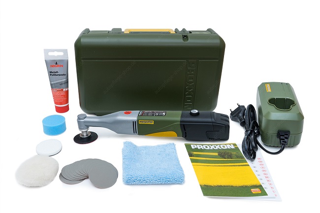 Αλοιφαδόρος μπαταρίας για μεγαλύτερη ευελιξία κατά τη στίλβωση, τον καθαρισμό, την αφαίρεση της σκουριάς και την προσθήκη το φινίρισμα μετά το βερνίκωμα. Το σετ περιλαμβάνει μπαταρία ιόντων λιθίου Li/A2 (10.8V) και γρήγορο φορτιστή μπαταρίας LG/A.
