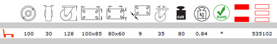 Κατάλληλο για καρότσια με ελαφρα φορτια, επίσης σε δαπεδα με ανωμαλω εδαφος. εσωτερική και εξωτερική χρηση.Συνιστατε σε εφαρμογές: καροτσάκια εργαλείων, καροτσάκια για βιομηχανική χρηση, μικρές κινητές σκαλωσιές, καδους κτλ. Ρόδα:ελαστικό πέλμα.Βάση:γαλβανιζε.