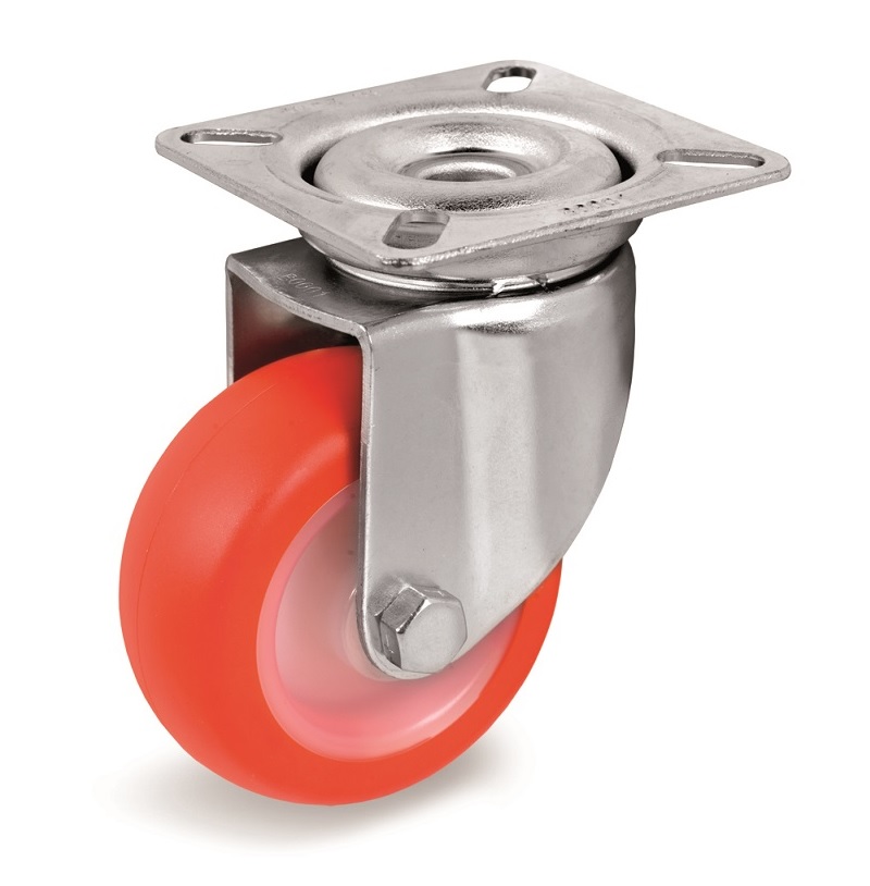 Κατάλληλο για χρήση σε διαφορετικούς τύπους καροτσιών, ιδίως στο χώρο της εστίασης.Καλή ικανότητα μεταφοράς φορτίου σε σχέση με τροχούς μικρής διαμέτρου.Πέλμα:θερμοπλαστική πολυουρεθάνη.Κέντρο: πολυαμίδιο.Βάση: γαλβανιζέ.