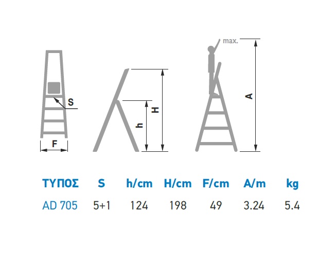 • Η σκάλα παρέχει όλες τις ευρωπαϊκές προδιαγραφές ΕΝ131 (ΤUV).