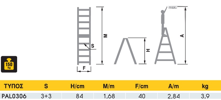 Υψηλής σκληρότητας κατασκευή αλουμινίου με πάχος 1,7mm για επαγγελματική & οικιακή χρήση.Διαγραμμισμένα σκαλοπάτια για ασφαλές πάτημα.Ατσάλινες βίδες με κόντρα παξιμάδια τύπου αεροσκαφών με νάιλον επένδυση.Λαστιχένια πέλματα με ένωση ασφαλείας.Ελαφριά, πρακτική στη μεταφορά και αναδίπλωση.Οι σύνδεσμοι ράβδοι δίνουν δυνατότητα εύκολης και γρήγορης αλλαγής θέσεως σε ευθεία.Μέγιστη αντοχή 150kg.Η σκάλα κατασκευάζεται σύμφωνα με τα ευρωπαϊκά πρότυπα EN131.