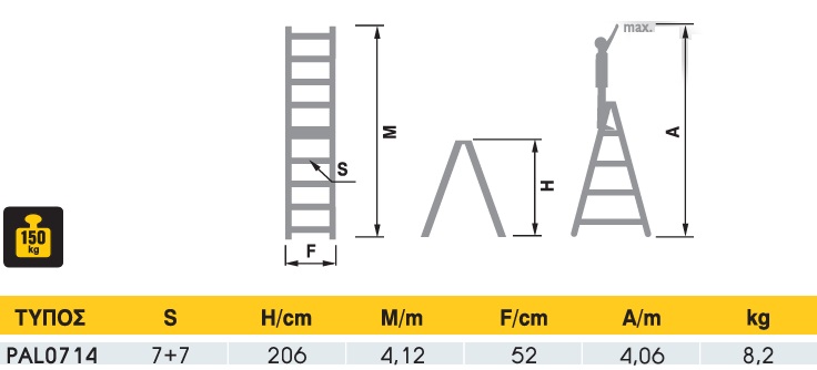 Σκάλα Αλουμινίου Διπλού Συνδιασμού PAL 7+7 Σκαλιά