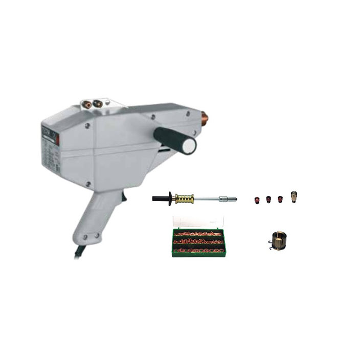 Πιστόλι συγκόλλησης καρφιών, βιδών, ροδελών, πριτσινιών σε λαμαρίνες. Κατάλληλο για χρήση στη φανοποιία. Η συγκόλληση διαφόρων εξαρτημάτων και ο εξολκέας επιτρέπει το ίσιωμα των λαμαρινών και τη γρήγορη επισκευή σε δύσκολα σημεία των αμαξωμάτων.