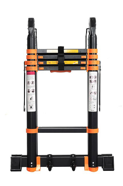 • Τηλεσκοπική σκάλα αλουμινίου ηλεκτροστατικής βαφής χρώματος μαύρου.