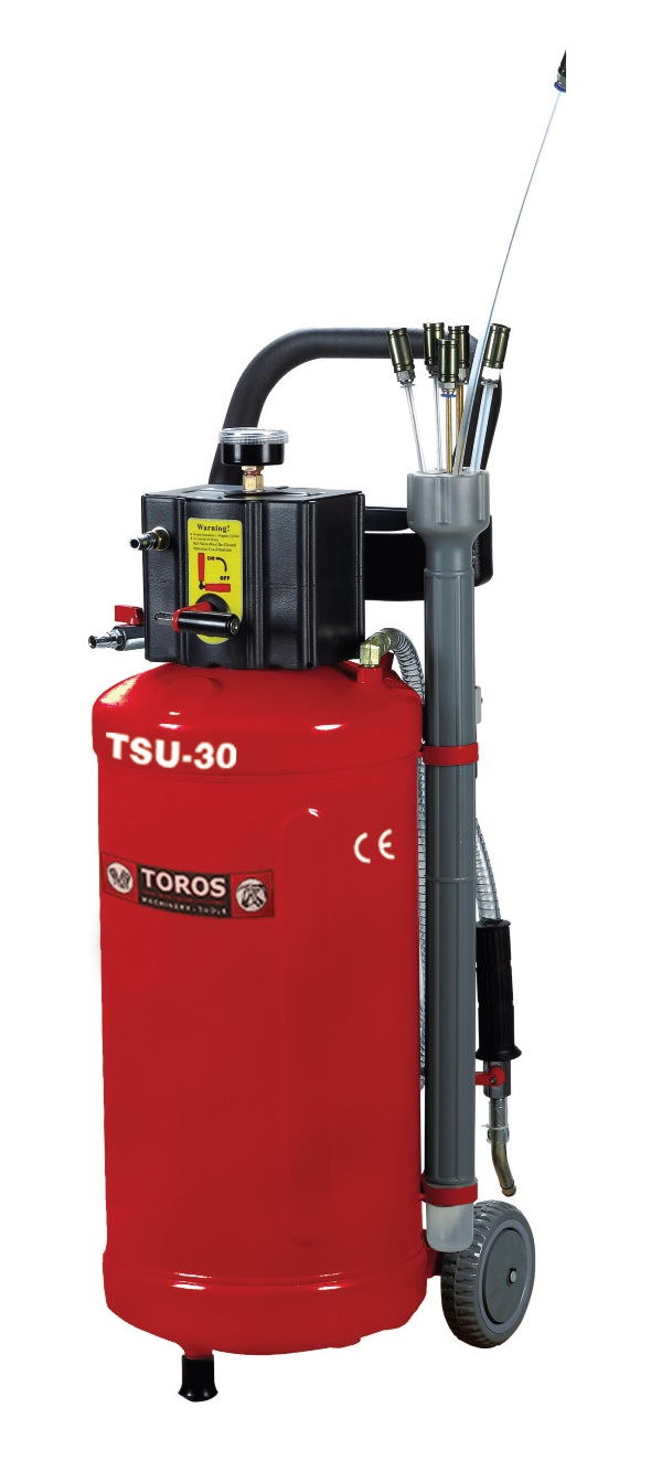 Τροχήλατος αναρροφητήρας λαδιού 30 Lt, TOROS TSU-30, κατάλληλος για το άδειασμα του λαδιού από τη μηχανή των οχημάτων χωρίς να χρειάζεται η ανύψωσή τους. Διαθέτει : βαλβίδα ασφαλείας, μανόμετρο και δείκτη στάθμη πληρώσεως κάδου. Συνοδεύεται με : 4 εύκαμπτους καθετήρες (5 x 730 mm, 6 x 730 mm, 7 x 1030 mm, 8 x 730 mm), 2 μεταλλικούς καθετήρες (5 x 730mm, 6 x 730mm) και 2 αντάπτορες για Mercedes, VAG