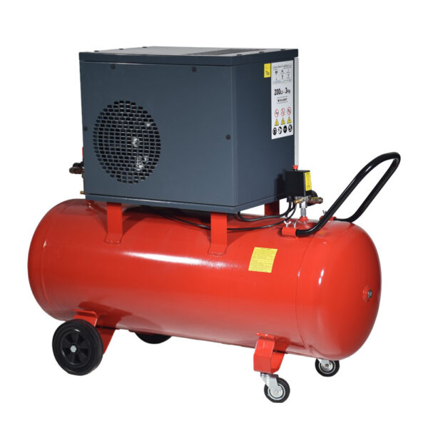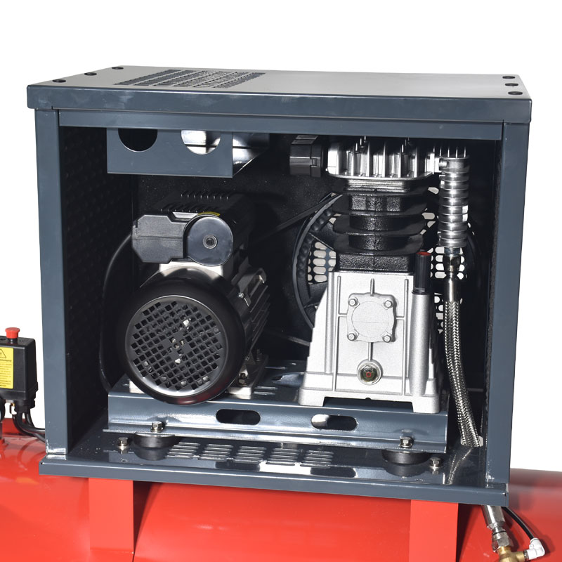 - Επαγγελματικός Τροχήλατος Μονοφασικός Ηχομονωμένος Αεροσυμπιεστής με Ιμάντα,Χαμηλού Θορύβου LwA – 76 dBa, Δικύλινδρη Ελαιολίπαντη Κεφαλή, Μετάδοση Κίνησης με Ιμάντα και Λειτουργία σε Χαμηλές Στροφές για Λιγότερες Φθορές.