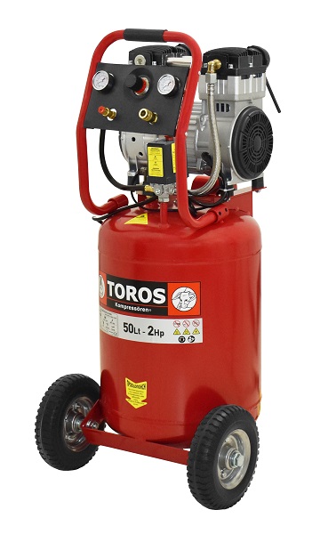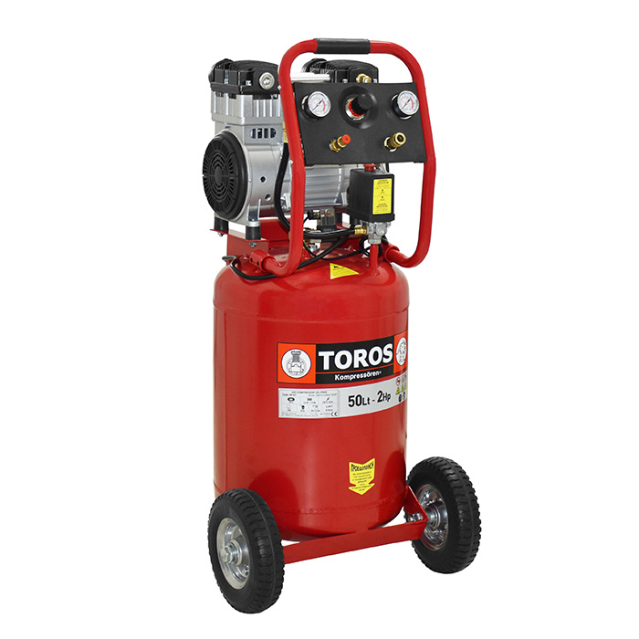 TOROS - Αεροσυμπιεστής Κάθετος Μονομπλόκ Χαμηλού Θορύβου Oilfree 50Lt - 2.0HP