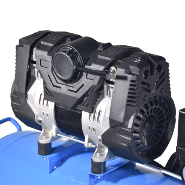 Αεροσυμπιεστής με μοτέρ ΕΠΑΓΩΓΙΚΟ με πυκνωτη 30μF και θερμικό με μπουτόν 8Α.Semi - SILENT (Χαμηλής στάθμης θορύβου.Κεφαλή OIL FREE (χωρίς λάδι).Προρυθμισμένος για λειτουργία από 6 έως 8 Bar για καλύτερη απόδοση και μεγαλύτερη αντοχή στον χρόνο.Δυνατότητα ρύθμισης λειτουργίας έως 10 Bar.