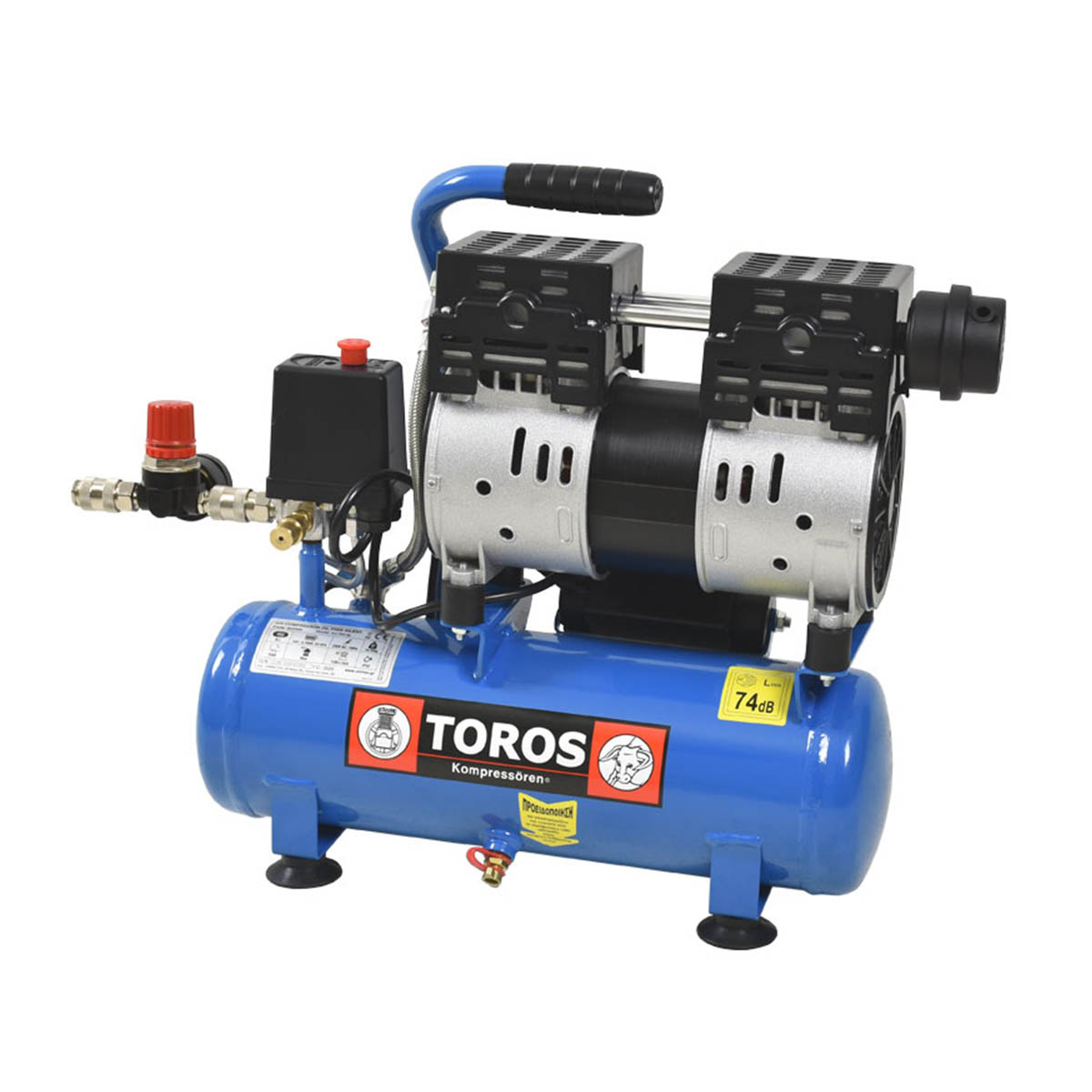 Toros - Αεροσυμπιεστής Μονομπλόκ Χαμηλού Θορύβου (Silent) Χωρίς Λάδι 6Lt - 1.0Hp