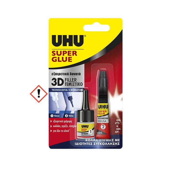 UHU - Super Glue 3D Filler Κόλλα Στιγμής 2 Βημάτων 9+3g