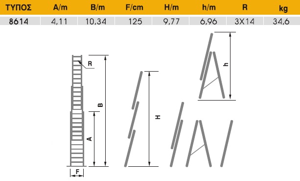 • ULTRA PLUS - Σκάλα Τριπλού Συνδιασμού 3 Τεμαχίων (3x14).