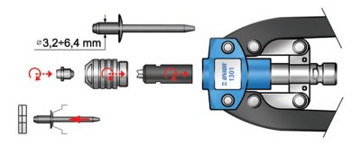 - 4 ακροφύσια για πριτσίνια 3,2mm - 6,4mm (1/8" - 1/4").