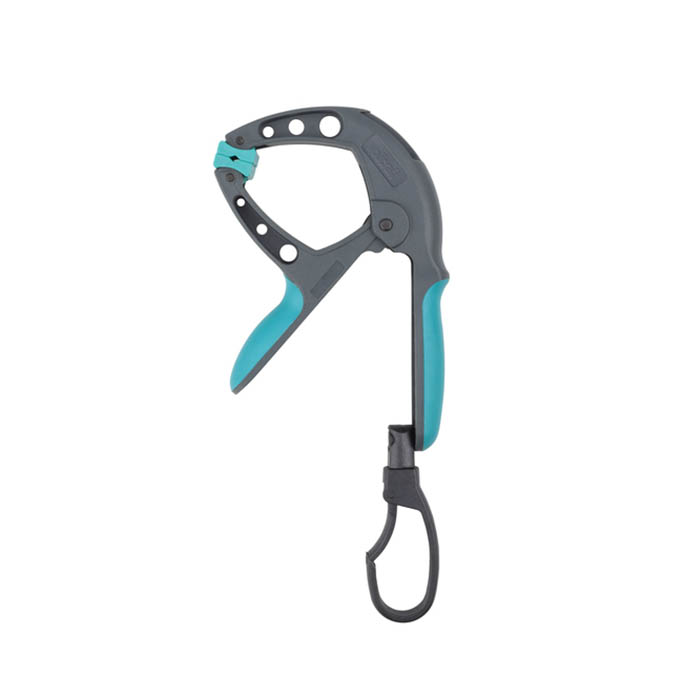 Σφιγκτήρας με ανθεκτικό ελατήριο για ασφαλή συγκράτηση με δύναμη σύσφιξης έως 800 g.Ενσωματωμένο άγκιστρο για ασφαλή στερέωση καλωδίων και συναφών με διάμετρο έως 25 mm και συγκράτηση ή ανάρτηση αντικειμένων βάρους έως 5 kgΆγκιστρο με δυνατότητα περιστροφής 360ο  για ευέλικτη χρήση.Άγκιστρο πλήρως αναδιπλώσιμο.Σιαγόνες συγκράτησης με άνοιγμα 50 mm για την προστασία των επιφανειών.Αυλακώματα V για ασφαλή στερέωση σε στρογγυλά υλικά.Εργονομική λαβή από δύο υλικά για άνετη σύσφιξη και συγκράτηση.