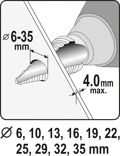 Ø 6-35 mm (6, 10, 13, 16, 19, 22, 25, 29, 32, 35 mm)